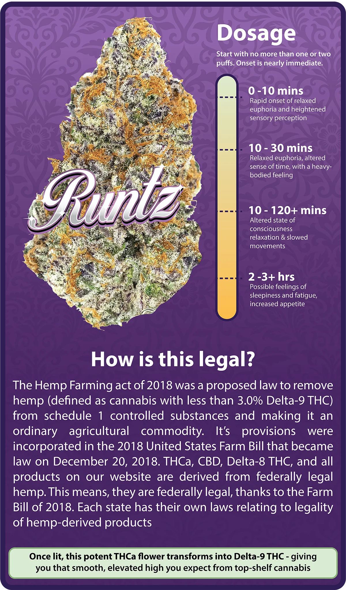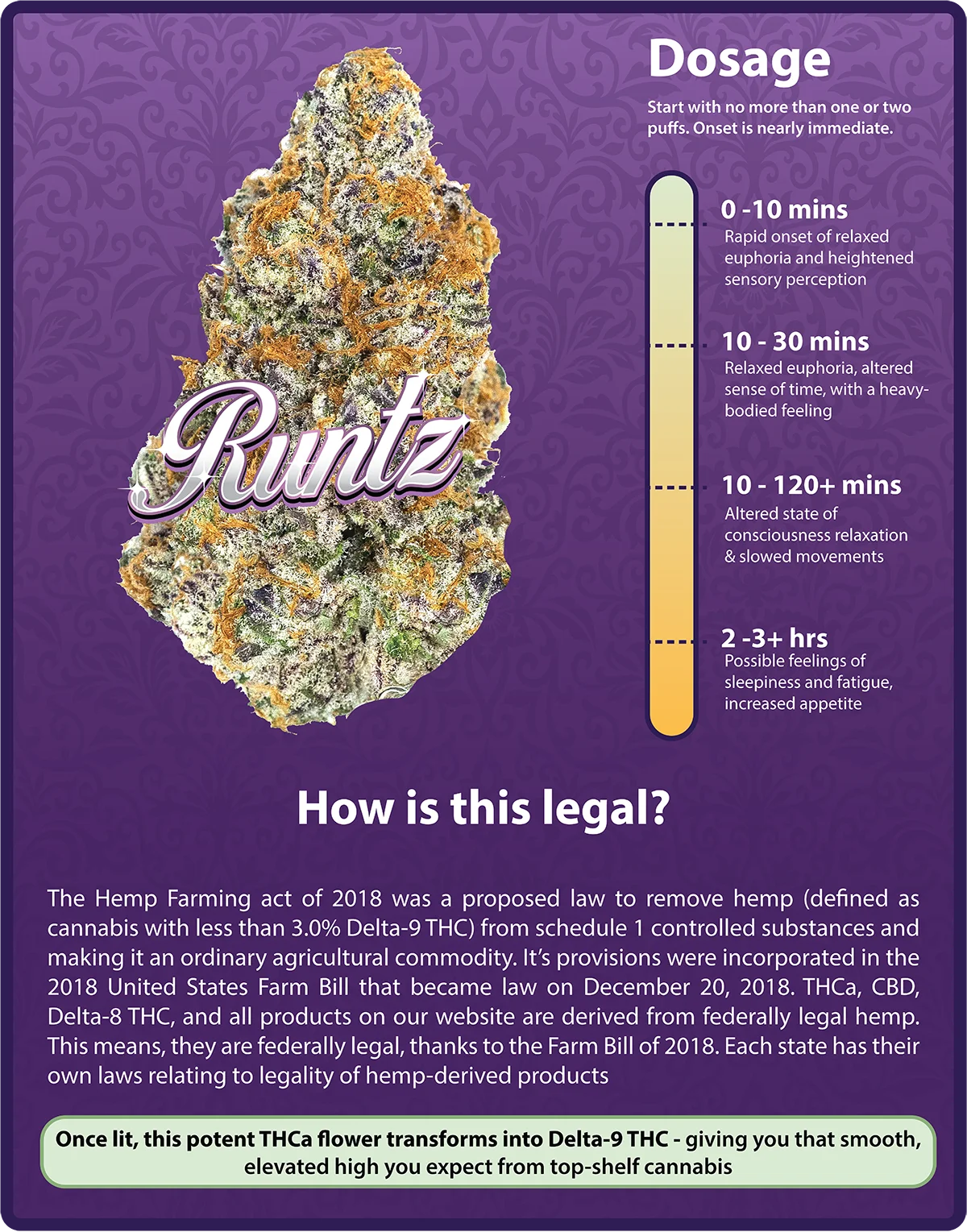 Once lit, this potent THCa flower transforms into Delta-9 THC — giving you that smooth, elevated high you expect from top-shelf cannabis.