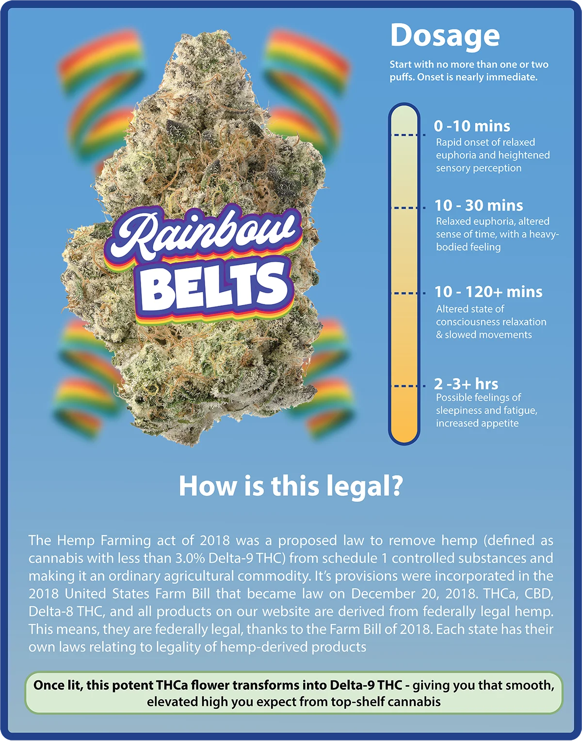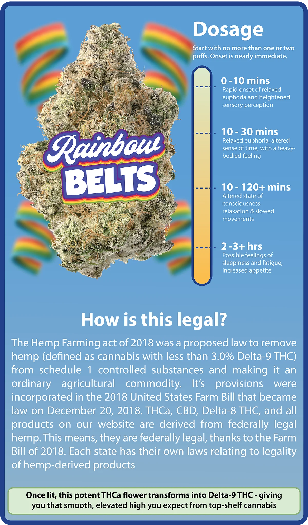 The high comes on bright and happy, smoothing out stress and lifting your mood without slowing you down. It’s the ideal anytime-hybrid for social sessions, creating, gaming, or just enjoying the moment. Rainbow Beltz is loud, flavorful, and crafted for people who appreciate real exotic indoor quality.