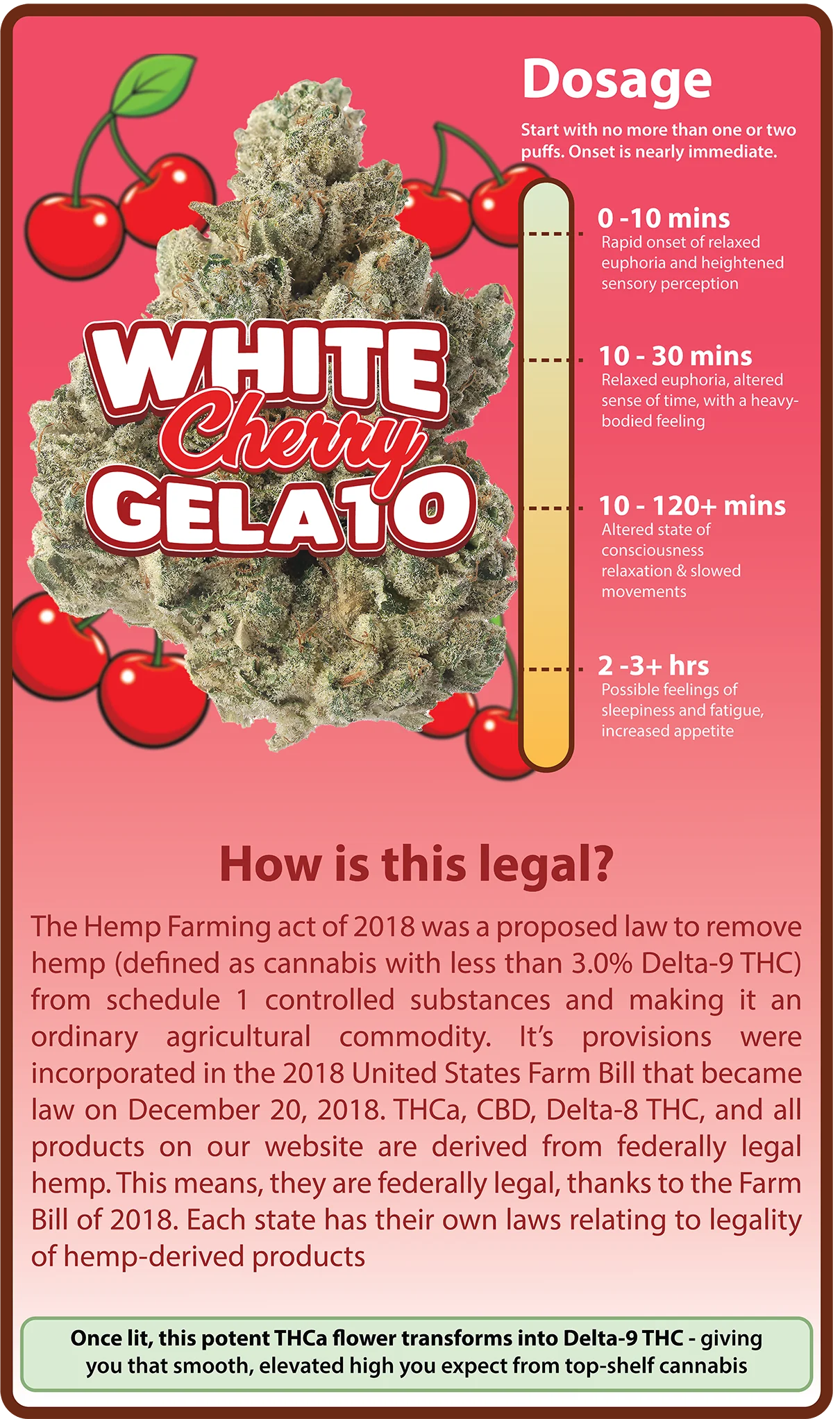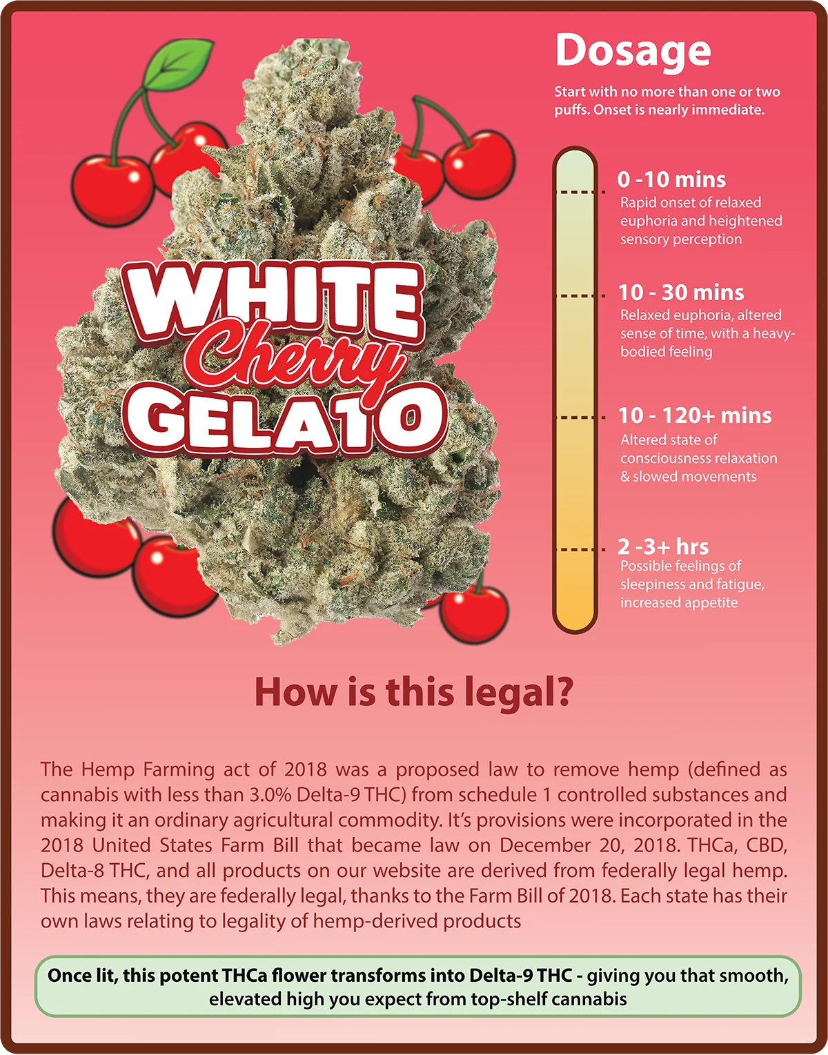 The high is balanced and relaxing, offering gentle mental uplift paired with a soothing body calm. It’s a top-tier gelato experience with a luxury cherry twist — perfect for evening unwinds or mellow creative sessions.